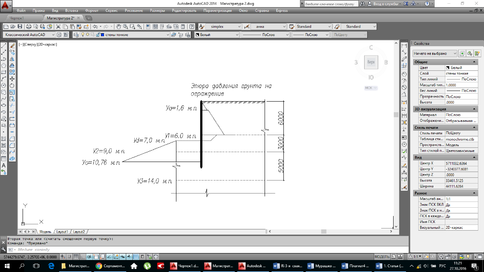 С помощью эпюры находим опрокидывающий и удерживающий моменты, действующие на ограждение. Ординатами эпюры являются интенсивности давления, т.е. давления, приходящиеся на единицу высоты ограждения (расчет ограждения производится на единицу длины стенки котлована). Площадь участка эпюры некоторой высоты ∆У имеет определенный физический смысл: это равнодействующая давления на этом участке. Зная величину равнодействующей и точку её приложения находим ее момент относительно условно неподвижной точки ограждения.