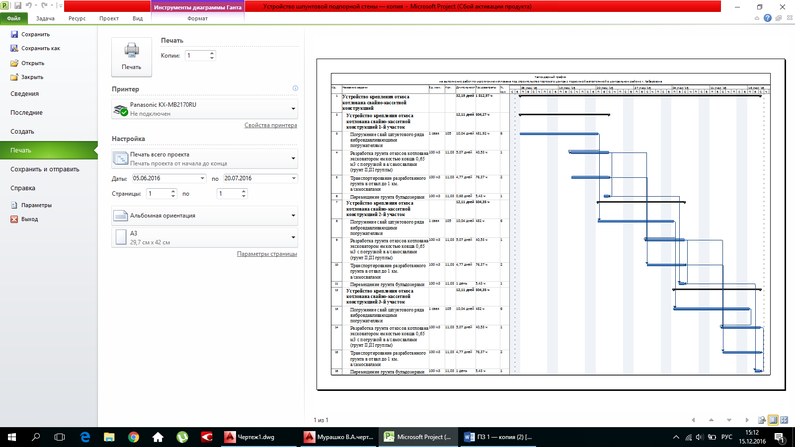 Календарный график на выполнение работ по креплению котлована свайно-кассетной конструкцией во время строительства торгового центра с подземной автостоянкой в центральном районе г. Хабаровска