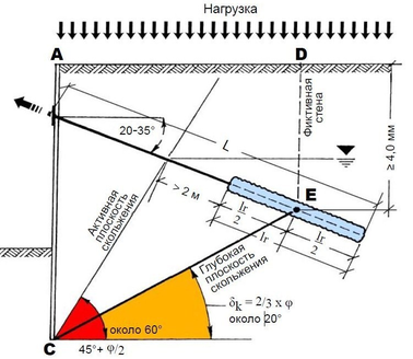 центр заделки анкера должен лежать в глубокой плоскости скольжения;