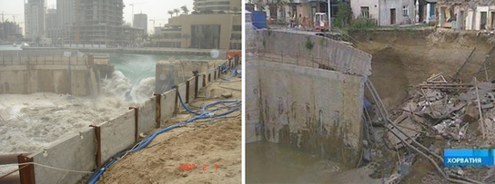 Рис. 1.1 Аварийные случаи обрушения котлована в Дубае и Хорватии