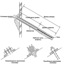 Рис. 3.3 Конструкция инъекционного грунтового анкера (а); типы анкеров (б).