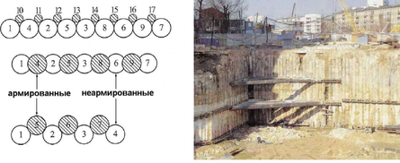 Рис. 3.16 Устройство укрепляющих конструкций котлованов с контрфорсами.