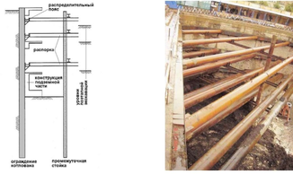 Рис. 3.11 Многоярусное распорное крепление котлована.