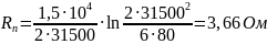 Определим сопротивление полосы Rn, уложенной на глубину [12]:
