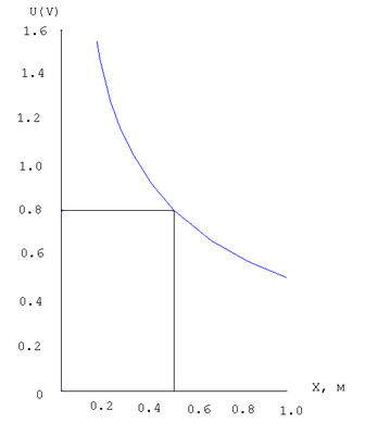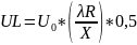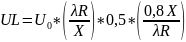 где UL - значение амплитуды волны на расстоянии X от источника (условные вольты);