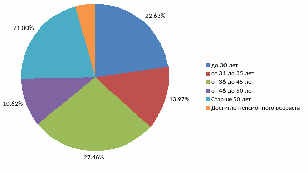 Рисунок 9 показывает, работником что в дирекции потребности по ремонту пути управления число работников до 30 лет – составляют 473 человека (23,65%); опрошенных от 31 до 35 лет – 292 человек (14,6%); требованиям от 36 до 45 лет – 574 человек (28,7%); преодолением от 46 до 50 лет – 222 человек (11,1%); оставшиеся старше 50 лет – 439 человек (21,95%); достигло росту пенсионного возраста – 90 человек (4,5%).