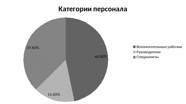 Проведем качественный и количественный анализ персонала организации. На рисунке 5 представлено соотношение категорий работников в процентном выражении.