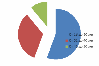 | От 18до 30 лет 106 человек | От 31 до 40 лет 63 человека | От 41 до 50лет 21 человек | |||