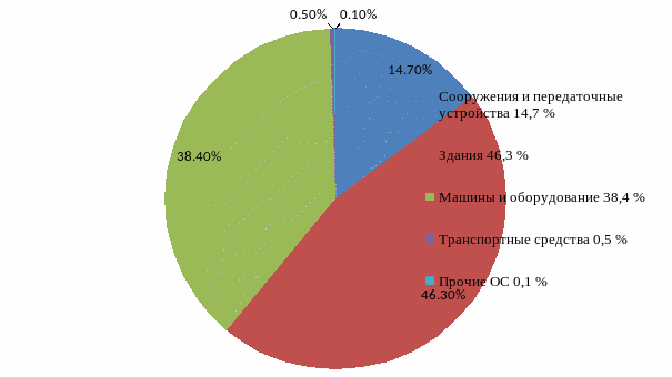 Рисунок 5 – Процентное отношение вида основных средств к первоначальной стоимости ОПФ за 2014 год