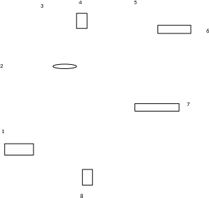1 – трубопровод сточной воды; 2 - адсорбер; 3 – мешалка-импеллер; 4 – трубопровод адсорбента; 5 - отстойник; 6 – трубопровод очищенной воды; 7 – трубопровод отстоенного адсорбента; 8 - трубопровод удаления адсорбента
