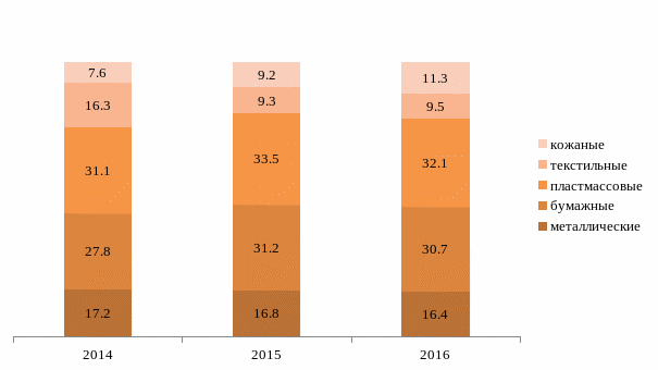 - ведущее место занимает печатная продукция (более 30 %) и изделия из пластических масс (30 %);