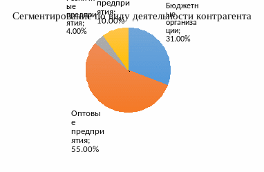 Проведем сегментирование клиентов по двум критериям: по виду деятельности контрагента и по функциональным особенностям. Так как полная клиентская база состоит более чем из 700 клиентов, но не все они являются постоянными, сегментацию проведем по основным 200 крупным и постоянным покупателям.