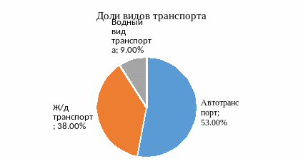 Рассмотрим на рисунке 7 доли использования компанией каждого вида транспорта.