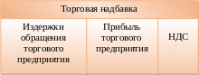 Рисунок показывает составные части, которые формируют розничную цену. Она включает в себя оптовую цену промышленности и торговую надбавку предприятия, которое непосредственно отпускает товары для потребления населению. Таким образом, товары с розничной ценой выбывают из сферы обращения и потребляются в домашнем хозяйстве или производстве.