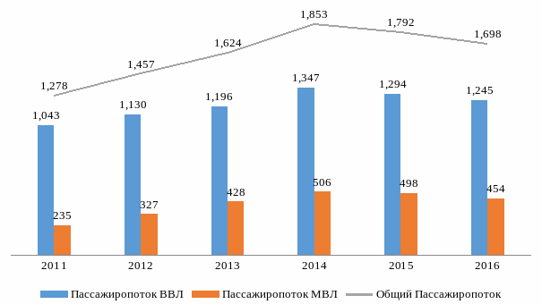 Рис.1. Пассажиропоток за период 2011-2016 гг., тыс.пасс.