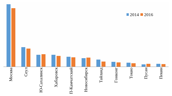 Наиболее востребованными направлениями в 2016 году традиционно остались Москва, Южно-Сахалинск, Хабаровск, Петропавловск-Камчатский, а среди международных – Сеул.
