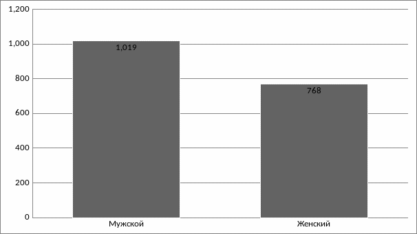 - 1019 человек мужского пола (57,02% от общего числа работающих);