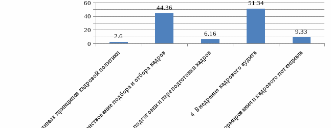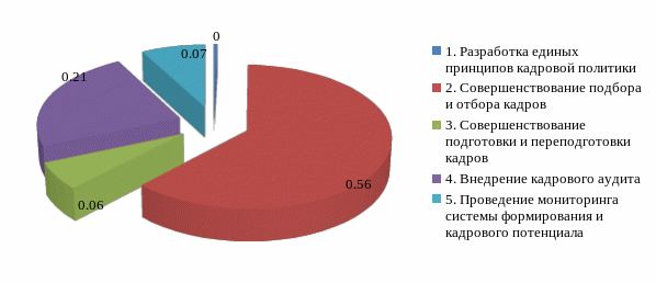 Основной экономический эффект будет получен от разработки единых принципов кадровой политики, а также совершенствования подготовки и переподготовки кадров (рис. 6). Наиболее эффективным мероприятием является совершенствование внедрение кадрового аудита (рис. 7).