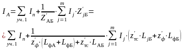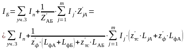 Токи фидеров при условии, что все нагрузки находятся на участке двустороннего питания (участок 2 на рисунке5.6) с учётом сопротивления фидеров формула примет вид [3]: