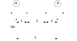 2) длины ВПФ 1 и ВПФ 2 не обязательно выбираются равными. Изменяя длину ВПФ 1 и ВПФ 2, можно изменить и долю тока, потребляемого соответственно от тяговой подстанции А и Б.