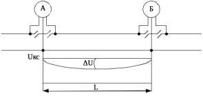 – расстояние между точками подключения выносных фидеров тяговых подстанций А и Б;