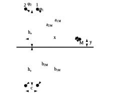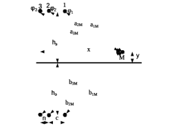 Проследим, как изменится напряженность электрического поля контактной сети (ПБСМ-70+МФ-100) при подвесе УП (А-185) и ЭП (А-185). Расчёт производится для однопутного участка. Расчёт напряженности EУ производится на уровне головы человека, стоящего на земле (у=1,8 м). Расчётная схема для контактной сети с УП представлена на рисунке 8.1.