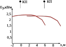 | Напряженность Eу, кВ/м | Расстояние x, м | ||||||||||