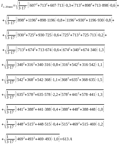Также, согласно требованиям [1], определяется трёхминутный эффективный ток для оценки максимальных мгновенных нагрузок внутри 20 мин интервала. Определение трёхминутного эффективного тока производится по формуле (3.6) где Qпринимает значение 3 мин.