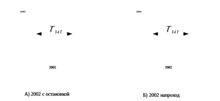1. Интервал неодновременного прибытия с остановкой обоих встречных поездов - это минимальное время от момента прибытия на раздельный пункт грузового или пассажирского поезда до момента прибытия на этот раздельный пункт встречного грузового поезда либо пассажирского поезда (рисунок 4.1 ).