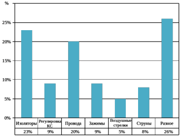 Рисунок 1.2 - Распределение повреждений устройств контактной сети по элементам в 2015 году