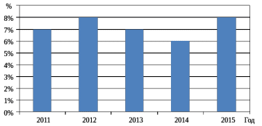 Количество повреждений струн контактной сети и их динамика за период 2011-2015 года представлена в таблице 1.3 и на рисунке 1.3.