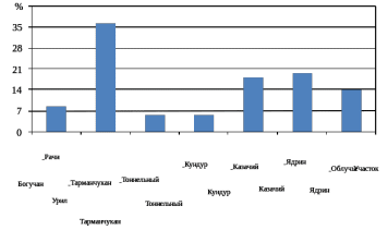 За период с 01.01.2017 по 31.01.2017 года на участке Архара-Облучье произошло 77 случаев обрыва струны контактной сети, данные об участках на которых произошло повреждение струн и их количестве представлены в таблице 1.4 и на рисунке 1.4.