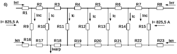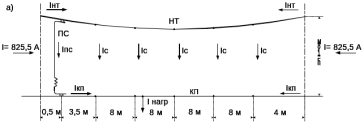 На рисунке (4.1, а). представлена контактная подвеска с увеличенным количеством электрических соединителей в пролете и схема ее замещения, рисунок (4.1, б).