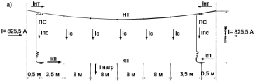 Так, для цепной подвески, состоящей из одного несущего и одного контактного провода, токи в несущем тросе и контактном проводе соответственно: