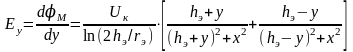 Вертикальную составляющую напряжённости электрического поля в произвольно выбранной точке М (рисунок 7.1) с координатами (x; y) рассчитаем путём дифференциации уравнения (7.7). Таким образом: