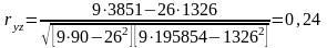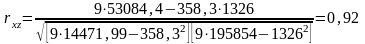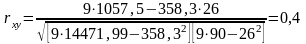 Согласно формул (3.2)-(3.3) коэффициенты линейной корреляции Пирсона равны:
