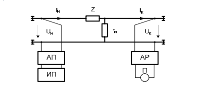 При передаче энергии в РЦ от источника питания к путевому приемнику часть ее теряется в промежуточной аппаратуре питающего АП и релейного АР концов. Значительная часть потерь происходит в рельсовой линии за счет падения напряжения на сопротивлении рельсовых нитей Z и утечек сигнального тока между рельсовыми нитями через сопротивление изоляции (рис.4.2)