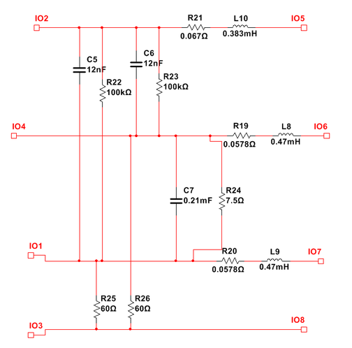 Каждая рельсовая нить соединена с контактной подвеской через резистор и конденсатор. Резистор и конденсатор это активная и реактивная проводимости воздуха [10]. Рельсовые нити заземлены через переходное сопротивление рельс-земля, а также соединены между собой резистором и конденсатором и являются активной и реактивной проводимостью балластной призмы.