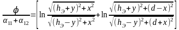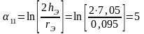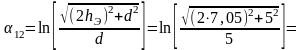 Примем высоту подвеса эквивалентного провода hЭ = 7,05 м, φ = 27,5 кВ, расстояние между путями на перегоне d = 5 м. Находим значения α11 и α12: