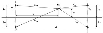точка М с координатами х и у; а1М, b1M, а2М, b2M – взаимные потенциальные коэффициенты;
