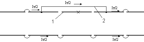 Перед одиночной сменой рельсов (рисунок 6.1) на электрифицированном участке, оборудованном автоблокировкой, рельсы звеньев (соседние с заменяемым) объединяют поперечными перемычками. Снятие этих перемычек разрешается только после зашивки нового рельса, установки и закрепления накладок.