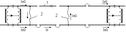 На рисунке 6.5 схематично изображен профиль двухпутного пути, где φ1 и φ2 – потенциалы эквивалентных проводов, В;