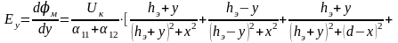 Рисунок 8.1 – Зависимость напряженности электрического поля контактной сети переменного тока Еу от расстояния до оси путей x для двухпутного участка