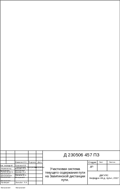 The thesis project examined the work Zavitinsk track Zabid. Made technical characteristic distance journey. Made complex travel planning for capital works and preventative maintenance of way on the course for the future 5 years and the current 2017 analysis of geometric parameters of rail track and modeling the organizational structure Zavitinsk distance journey. For the path calculated volumes of works on maintenance and developed process outage for the way to 8006-8007км direction's Curly–Tucan. Composed of cost of production of 1 km preventive maintenance the way the car is pulled .