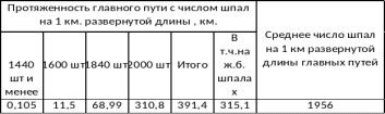 Таблица 1.8 Протяжение пути по видам подрельсового основания.