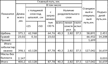 Таблица 1.6 Протяженность пути по видам балластного слоя .