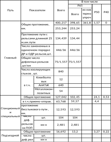 Таблица 1.9 Состояние и техническая характеристика рельсов.