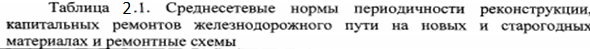 где li – нормативная потребность работ по капитальному ремонту пути; ni – количество повторений работ конкретного вида за период между капитальными ремонтами пути; l – ежегодная нормативная потребность в ремонте.