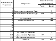 | Количество дефектов в накладках , шт.плетей/деф.мест | шт.плетей | 0 | |