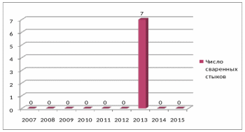 | Сварено стыков ПРСМ в 2016 г. | 0 | ||